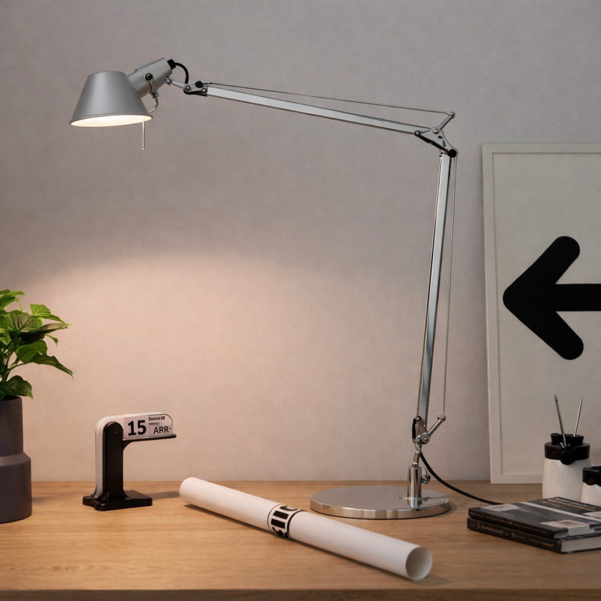 Artemide Tolomeo LED is de perfecte tafellamp voor geraffineerde verlichting die je nooit in de schaduw zet. Het minimalistische lampontwerp heeft een matte aluminium voet en kap voor een subtiel, ingetogen effect terwijl het toch een warme gloed uitstraalt. De taakverlichting helpt bij het verlichten van je werk - papieren, projecten of bureaublad - zonder de kamer te overweldigen, zodat je je kunt concentreren op wat het belangrijkst is.
