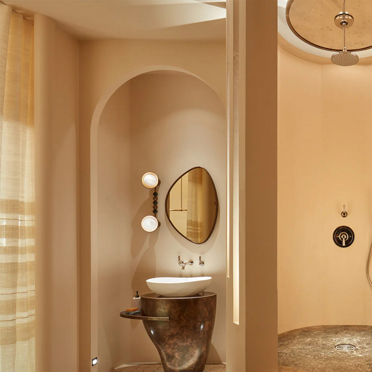 Dankzij de IP44-bescherming is deze lamp geschikt voor binnenruimtes, inclusief badkamers en luxe hotelsuites.