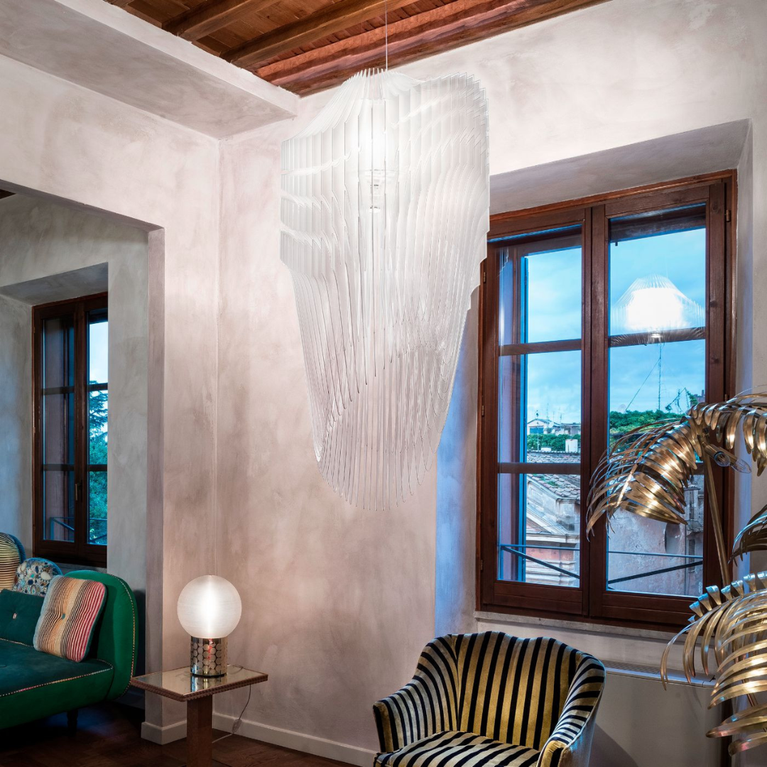 Slamp – Veli Groot Hanglamp – Sculpturale elegantie zwevend in de ruimte De Slamp Veli Groot hanglamp is een expressieve blikvanger met een verfijnd, handgevouwen ontwerp. Gemaakt van Slamp’s kenmerkende Opalflex® of Lentiflex® materiaal, lijkt de lamp op een wolk...
