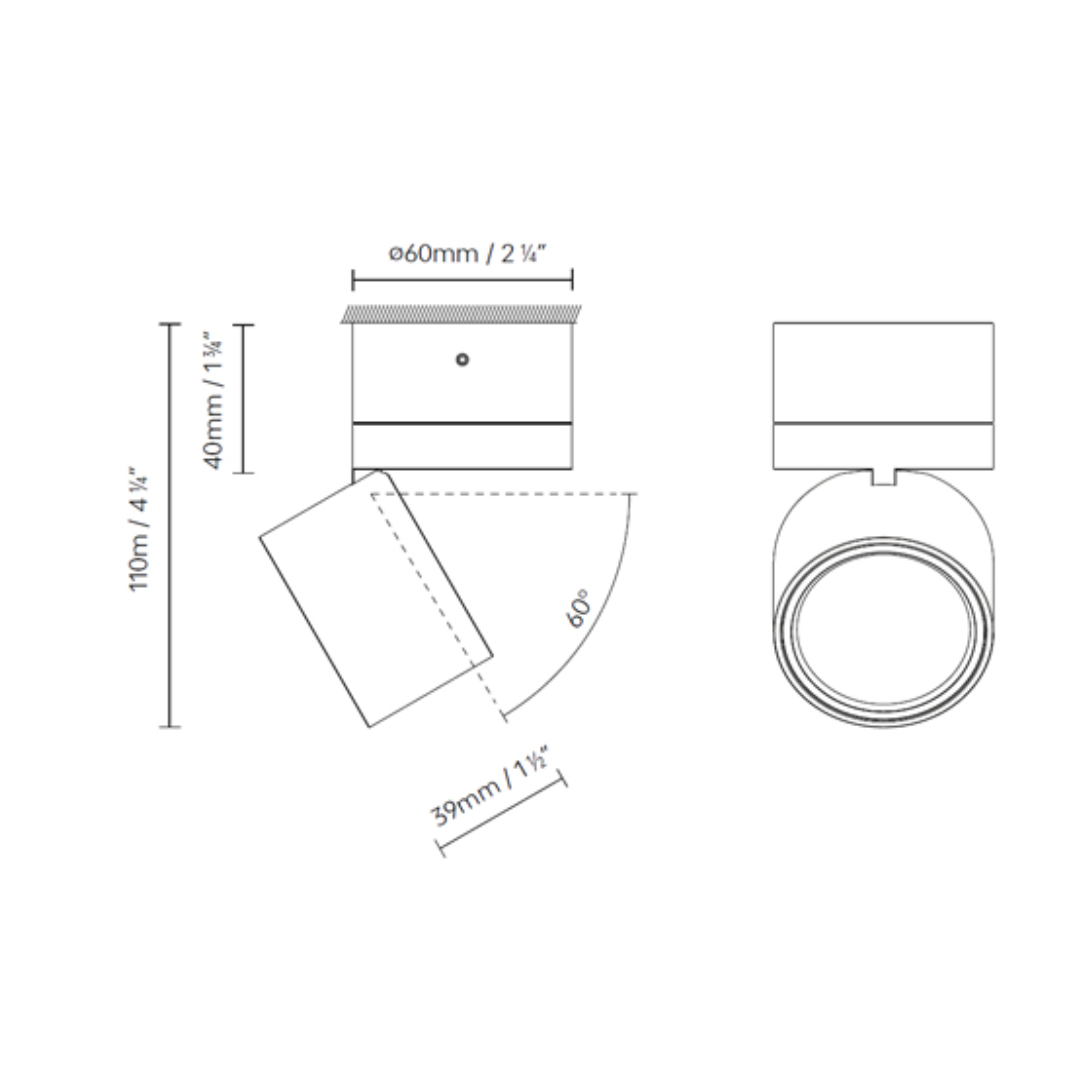 ✔ Compact formaat – Ø60 x 39 x 40 mm, geschikt voor diverse plafondtypes.