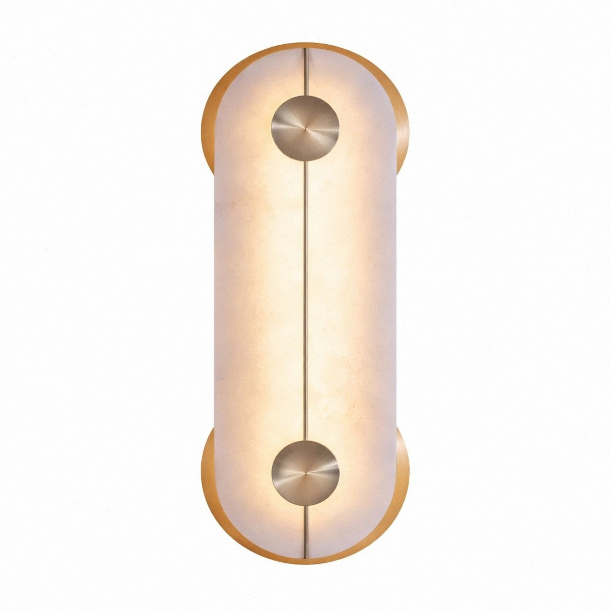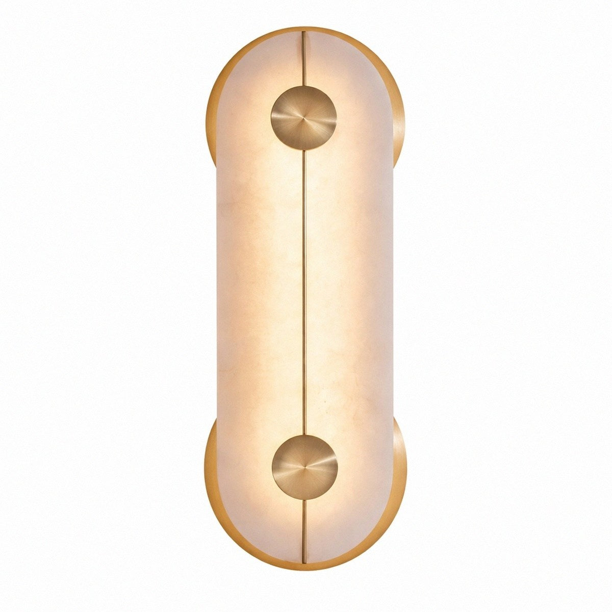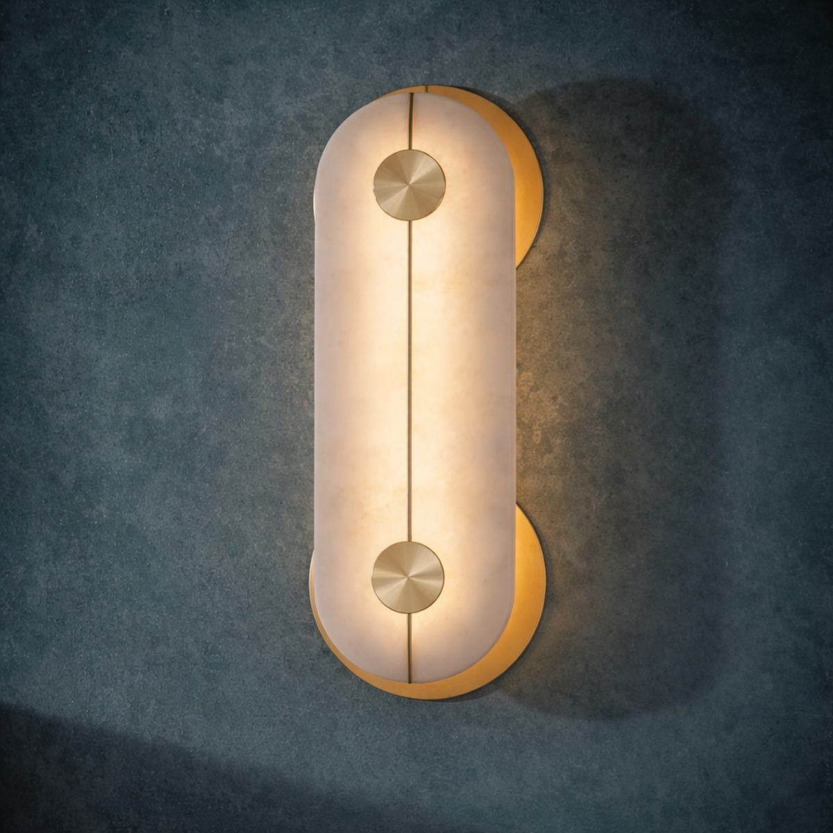 In de eerste schetsen begon Brace als een Afrikaans schild, dat geleidelijk werd teruggeslepen tot deze pure 'pil'-vorm. Elk stuk albast is anders, dus het diffuse licht is oneindig gevarieerd.