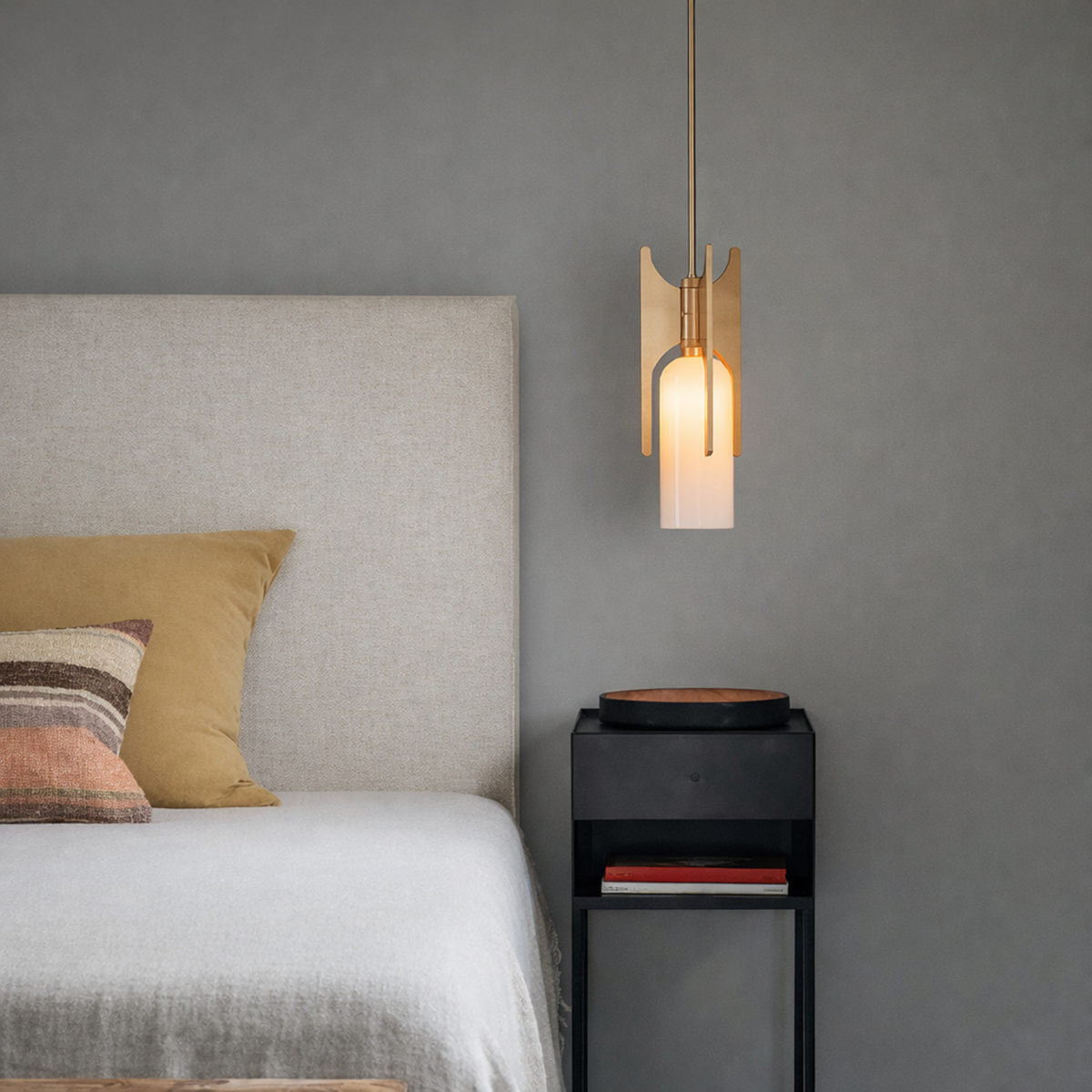 De Bert Frank Pennon Hanglamp, ontworpen door Bert Frank, is een verfijnde designhanglamp die klassieke elegantie combineert met modern vakmanschap. Het slanke silhouet en het gebruik van hoogwaardig messing en fijn porselein geven de lamp een luxueuze uitstraling. Met een zeer warm witte lichtkleur van 2700K creëert deze hanglamp een zachte, sfeervolle verlichting die perfect past in zowel woon- als hospitality-interieurs.