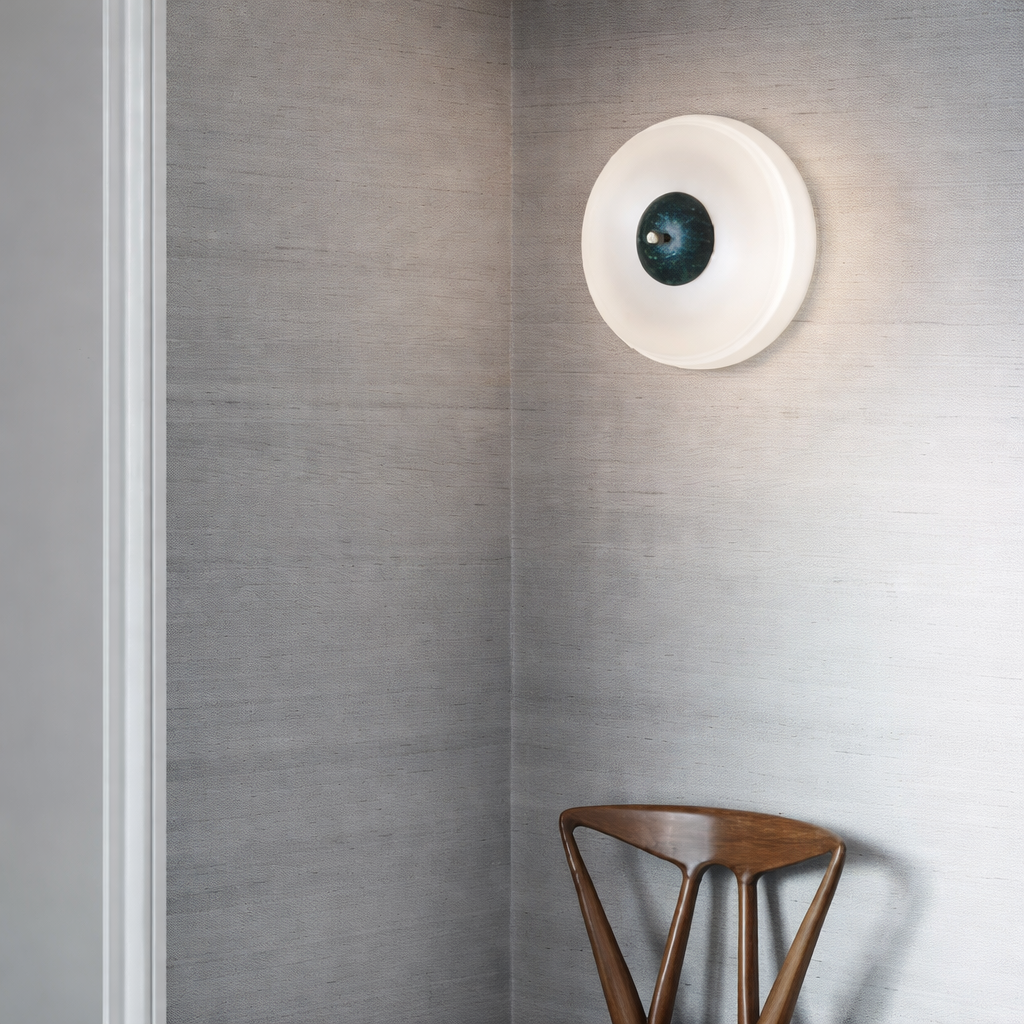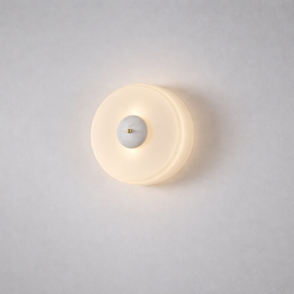 De Bert Frank Trave Wandlamp combineert messing, glas en steen tot een harmonieus geheel dat elegantie en vakmanschap uitstraalt. Met zijn subtiele ronde vorm en warme lichtkleur brengt deze wandlamp niet alleen sfeer, maar ook een gevoel van balans en verfijning in elke ruimte. De Trave Wandlamp is ideaal voor wie houdt van modern design met een tijdloze, luxueuze uitstraling – perfect voor woonkamers, hallen en exclusieve hotelinterieurs.