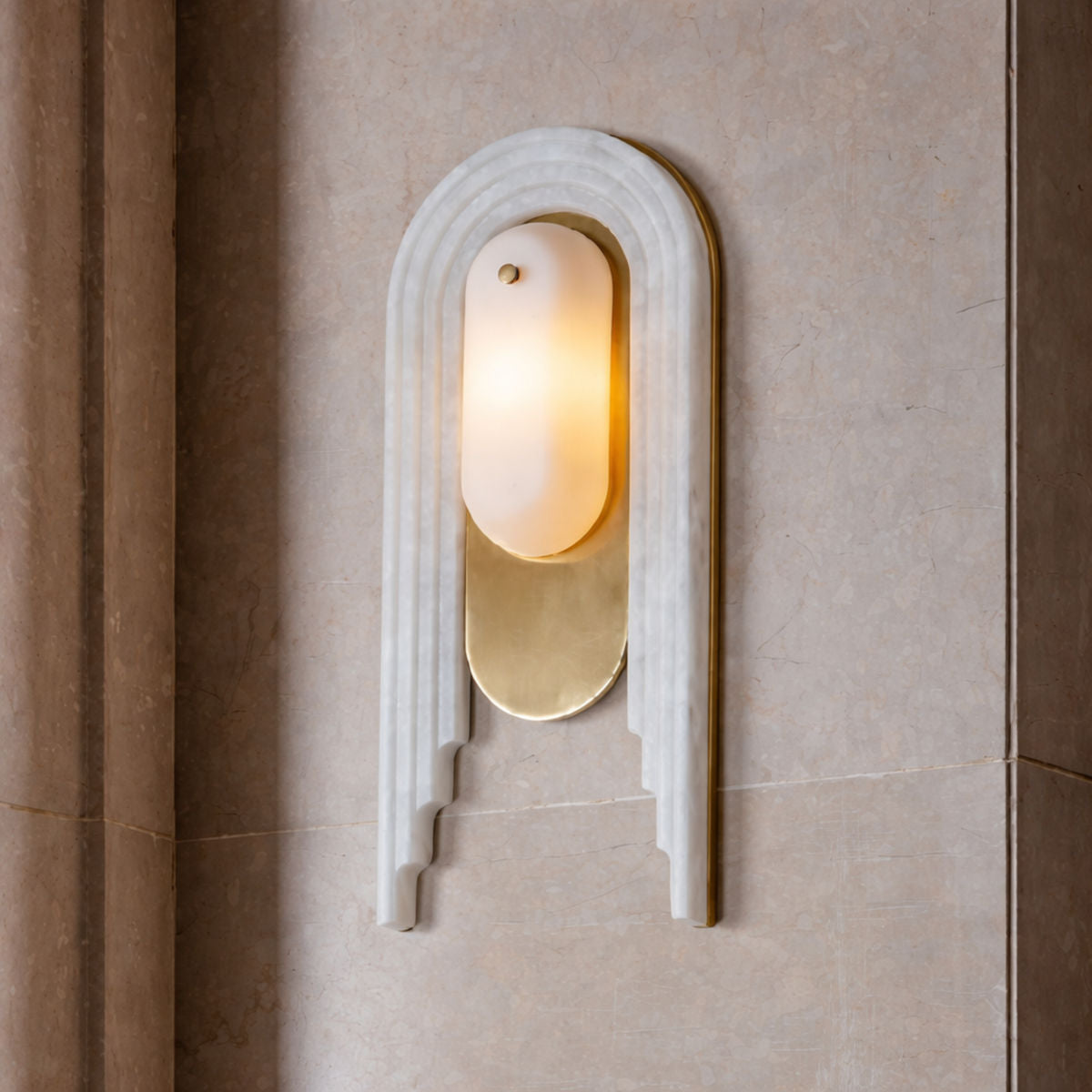 Bert Frank - Spate Wandlamp – Luxe wandlamp met een artistieke uitstraling De Bert Frank Spate Wandlamp combineert verfijnde materialen en ambachtelijk vakmanschap in een elegant ontwerp. Deze luxe wandlamp, vervaardigd uit messing, glas en marmeren steen, straalt een warme...