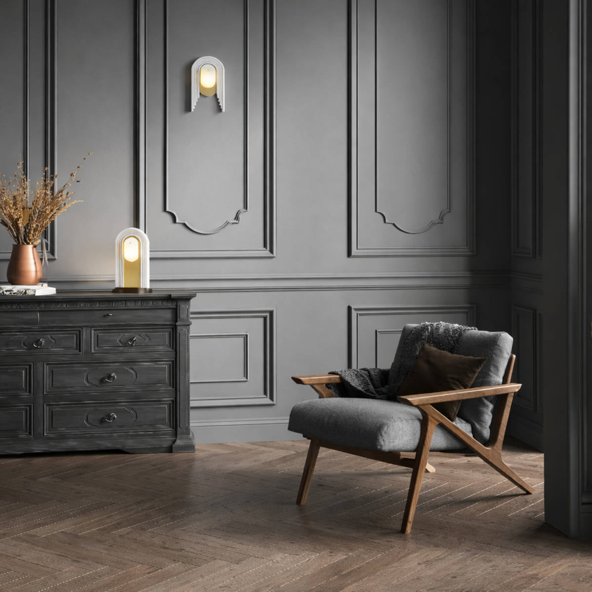 Bert Frank - Stasis Wandlamp – Sculpturale wandverlichting met verfijnde elegantie De Bert Frank Stasis Wandlamp is een meesterwerk van balans en vorm, waarin messing en koper op elegante wijze samenkomen. Deze wandlamp straalt klasse en verfijning uit, en vormt...