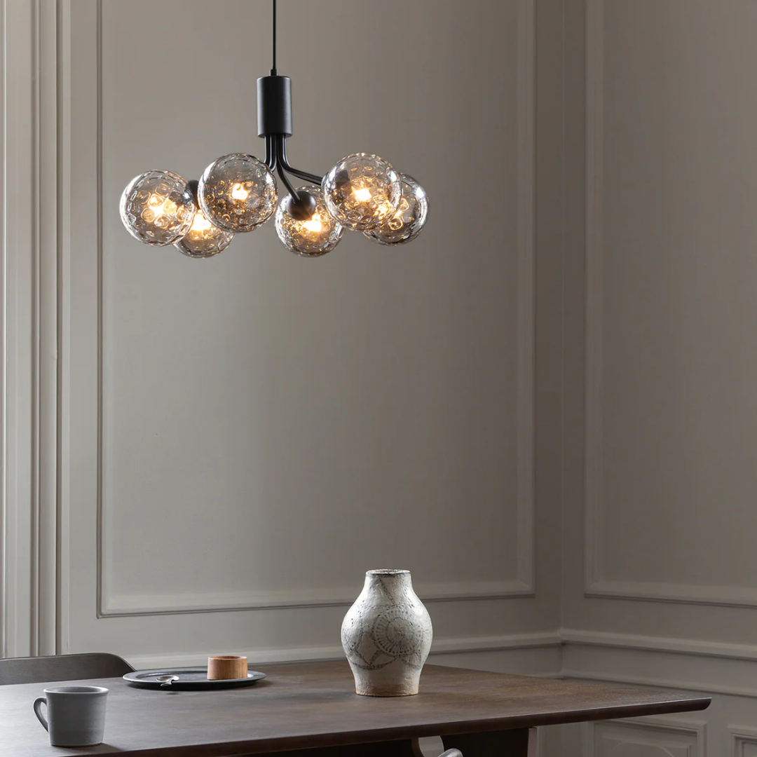 ✔ Elegante lichtspreiding – Zes glazen bollen zorgen voor een warme en gelijkmatige verlichting.